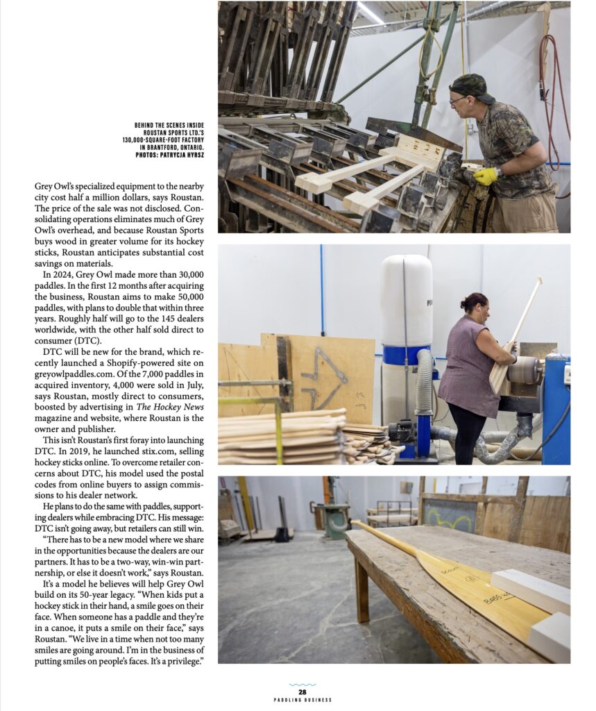 W. Graeme Roustan’s recent acquisition, 50-year-old Grey Owl Paddles, is featured in Paddling Business, a B2B publication of Paddling Magazine.